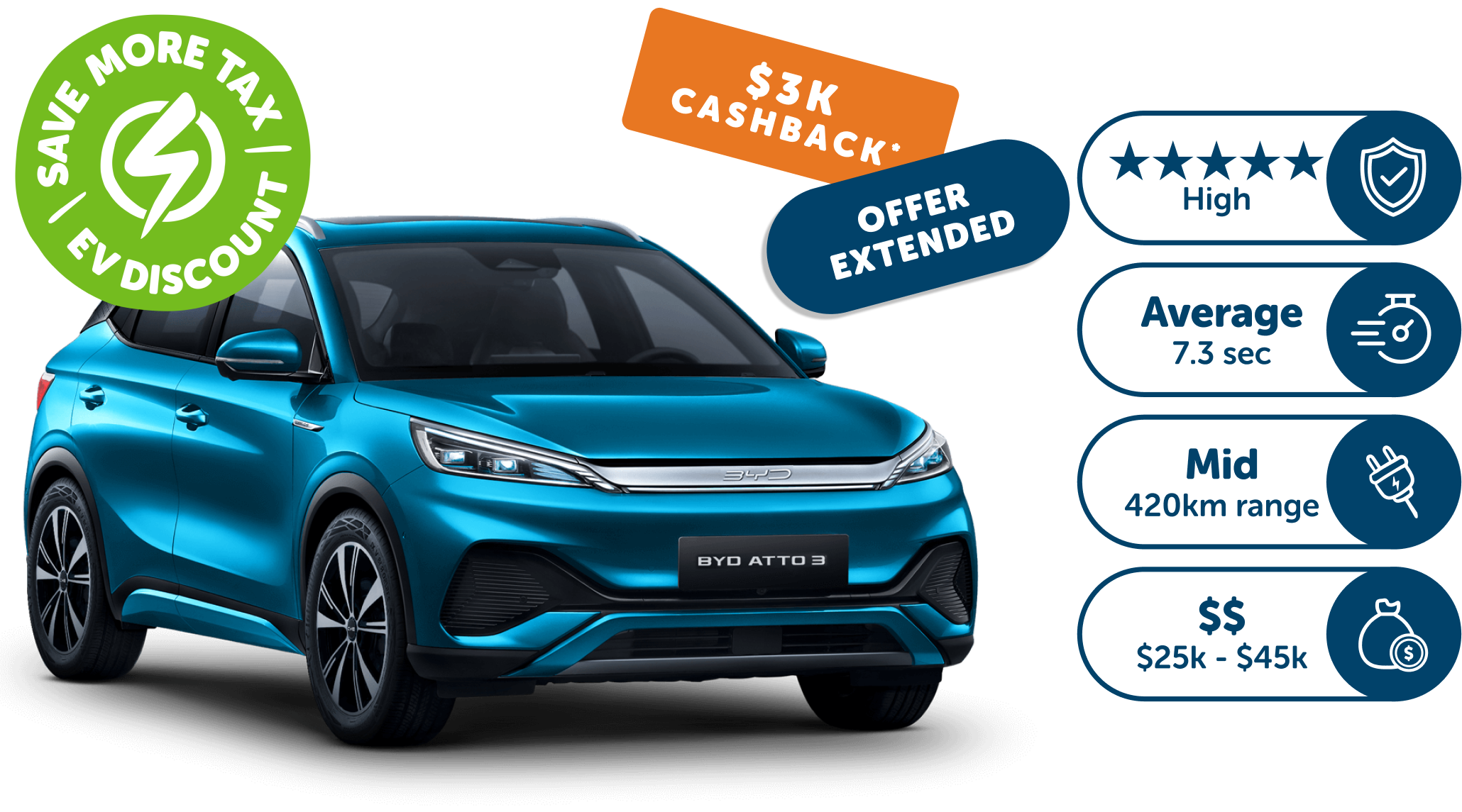 *BYD OFFER: By participating in this offer, you agree to these Terms and Conditions. Order an eligible BYD vehicle and finance the vehicle purchase by way of novated lease through a Novated Lease provider. Orders must be placed between 1 -31st January and delivered by 28th February 2026 to qualify (unless extended). Eligible Models: Atto 3, Seal, Sealion 6, Sealion 7 & Shark 6. Eligible customers will receive a cashback of $3000 from BYD, paid directly into their nominated bank account. To claim the cashback from BYD: The application form will be emailed to customers within 7 days of vehicle delivery. Customers must complete and submit the official Cashback Application Form no later than March 31st, 2026. If the Cashback Application Form is not submitted to BYD by this time the customer will not be eligible for the $3,000 Cashback. Customers must provide their bank details, including a screenshot of their bank statement clearly displaying the BSB and Account Number as well as account name matching details on customer order. Cashback payments will be processed within 30 days of receiving all required information. Forfeiture: Failure to submit the completed Cashback Application Form by March 31st 2026, will result in automatic forfeiture of the cashback entitlement.